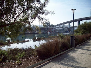 This is a link to a fascinating article about different projects in San Francisco that never came to pass. We went to the AIA (American Institute of Architects) office today to tour their exhibits of some of the projects. The most fantastic one was a rendering (shown here) of “Folding Water”, a project to help mitigate the effects of the rising sea levels with climate change.